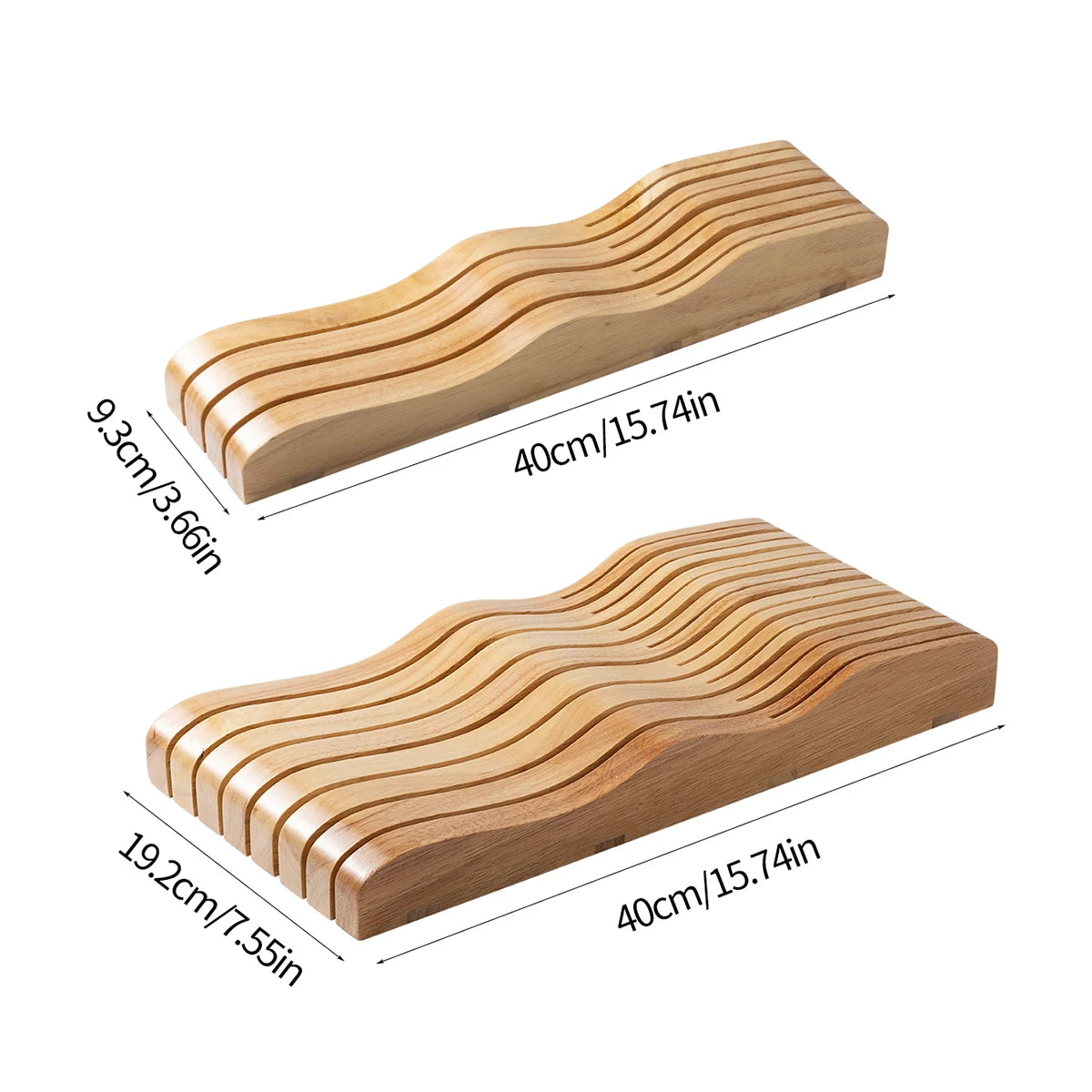 Keep your kitchen drawer neat and organized with this stylish wooden knife rack. It securely holds your knives while saving space and adding a natural touch.