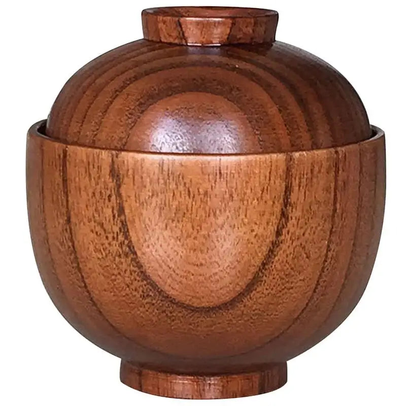 Handcrafted wooden bowl with a lid. Great for rice, soup, or snacks. Keeps food warm and fresh.